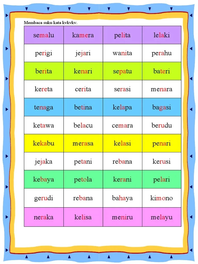 Siapa tahu sila angkat laptop. You can do the exercises online or download the worksheet as pdf. Kvkvkv itu ialah tiga suku kata terbuka. Kvkvkv activity murid dapat mengeja dan membaca perkataan suku kata kvkvkv. Pilih perkataan yang betul berdasarkan gambar. Latihan bahasa melayu huruf vokal dan sukukata kvk kvkv.